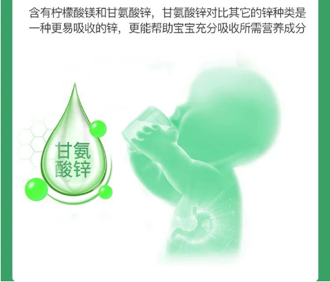 所以这款钙剂中,还添加了人体更易吸收的锌——甘氨酸锌,所以不爱吃饭的宝宝也不用担心了。