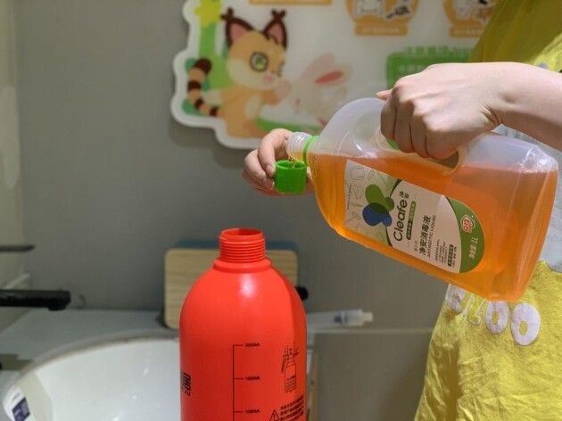 开馆前与闭馆后,小小动物元会安排专人对场馆进行专业的卫生清洁并实施全场环境消毒,小到体验区的桌椅板凳,大到场馆的全面空间,都会采用“净安季铵盐消毒液”全面消毒。