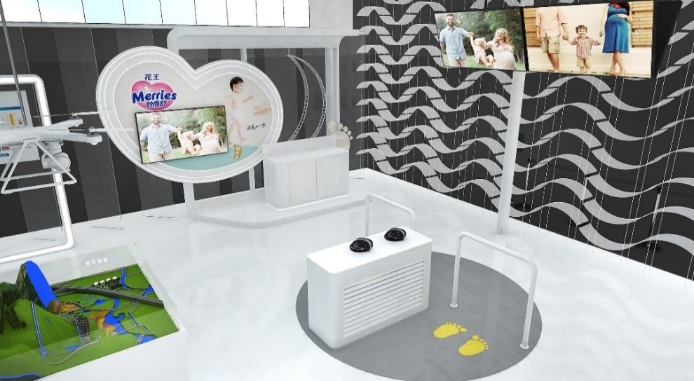 为了让观众更直观地了解“魔力吸收芯”技术,现场还设置了“宝宝步行VR世界”,穿上VR体验设备即可亲身体验宝宝的步行状态。伴随视野的大幅度左右晃动,VR画面将真实模拟1岁左右的宝宝穿着吸收尿液后膨胀的纸尿裤,难以保持直线行走的情形。而将体验模式切换到穿着吸收尿液后的“妙而舒成长一步婴儿学步裤”时,则能像无穿戴时一样轻松自如地行走。