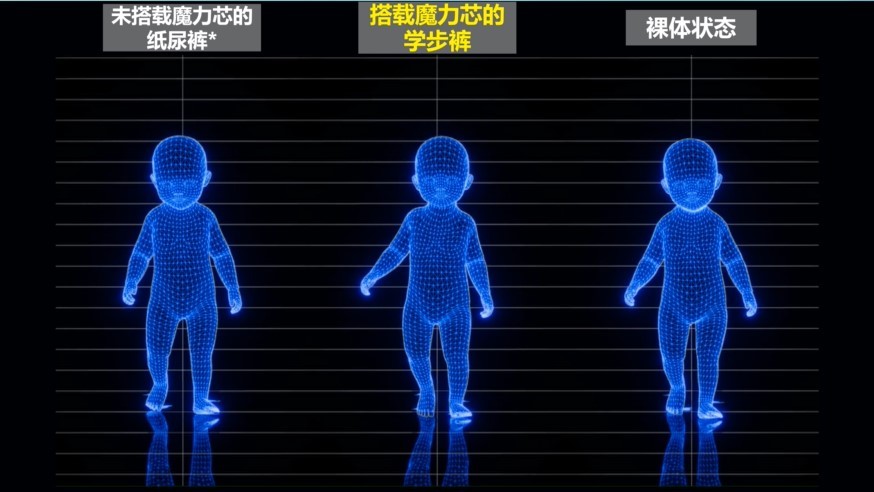 在“未来生活”版块,将为大家介绍花王基于婴幼儿行走数据建立的行走解析模型,带领大家具象化地了解婴幼儿在不同情况下的行走状态,清晰地观察到搭载了“魔力吸收芯”的“妙而舒成长一步婴儿学步裤”对婴幼儿的行走基本不会造成影响的穿着效果。