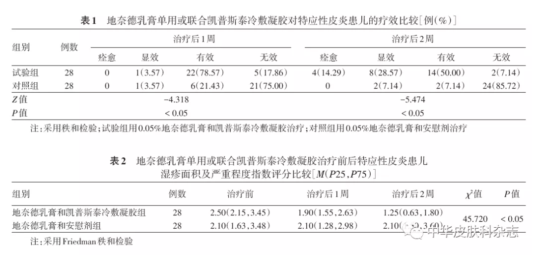 综上,短期应用凯普斯泰冷敷凝胶联合地奈德乳膏可有效治疗儿童AD,且与安慰剂比较未增加不良反应的发生。