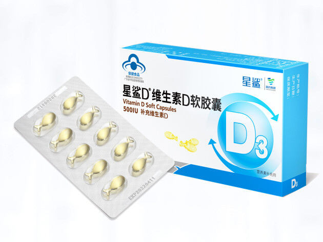 星鲨®维生素D软胶囊:每粒胶囊含维生素D3 360IU,科学的幼儿剂量,适合宝宝长期补充。成分温和易吸收,口感纯正不刺激味蕾。不添加香精、防腐剂、糖,不增加宝宝的肠胃负担。