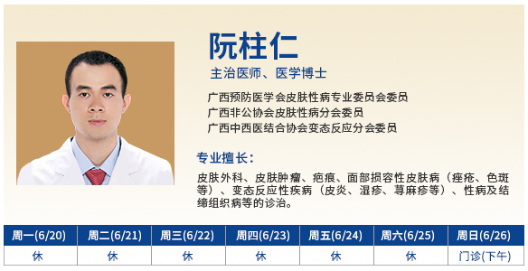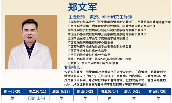 【医讯】6月20日—26日广西医科大学第一附属医院皮肤性病专科联盟专家团队排班表