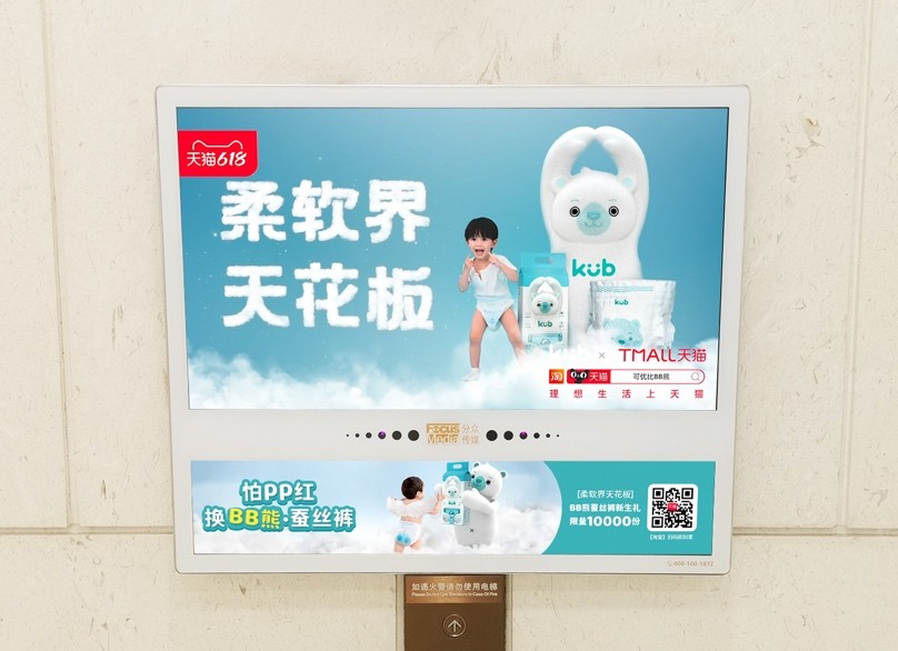 6月以来,可优比BB熊蚕丝裤强势刷屏分众电梯媒体,利用电梯广告高频次展现、高效率触达的特点大力宣传产品“柔软界天花板”的优势,打造新爆品并推动出圈。