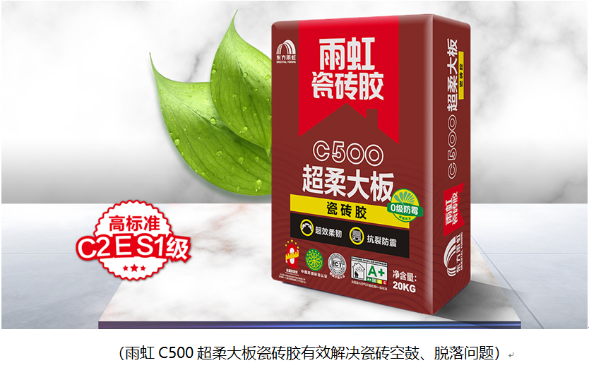 雨虹瓷砖胶拥有多款瓷砖胶产品,适用范围广,可以满足不同场景、不同尺寸瓷砖的铺贴需求,避免瓷砖空鼓。比如,雨虹C500超柔大板瓷砖胶拉伸粘结强度高达1.9-2MPa,最大可贴1200mm*2400mm的瓷砖,大板瓷砖铺贴更牢固;雨虹超柔多功能型瓷砖胶柔性抗变形,贴烟道处瓷砖也不用担心瓷砖空鼓、掉砖;雨虹无尘强力玻化砖瓷砖胶,粘结力强,适用于室内外铺贴吸水率低的高密度瓷砖,而且,这款瓷砖胶施工时灰尘少,有益于施工师傅的健康。