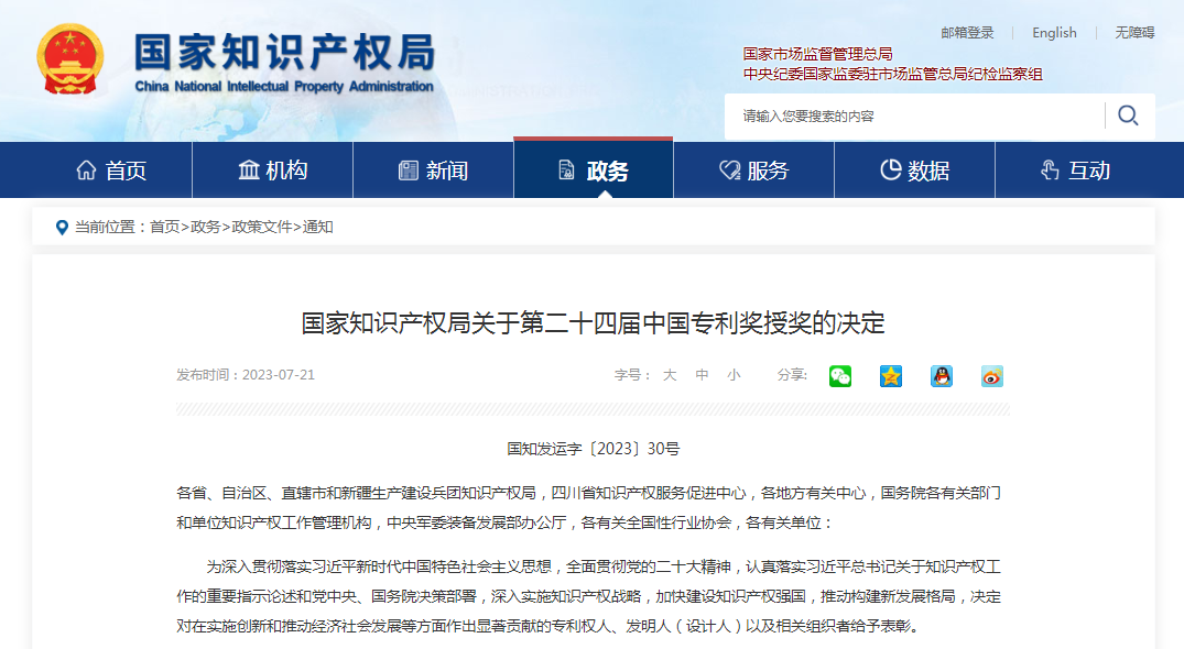 近日,国家知识产权局官网公布关于第二十四届中国专利奖授奖的决定,广东光阳电器有限公司(冠雅照明)的“一种伸缩两用的充电灯具”专利脱颖而出,荣获中国专利奖优秀奖。这是冠雅照明继2017年之后,第二次获得该项国家级荣誉!
