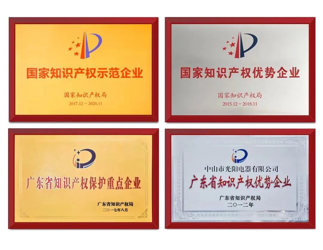 冠雅照明于2017年荣获“国家知识产权示范企业”、并于更早前荣获“国家知识产权优势企业”、“广东省知识产权优势企业”、“广东省知识产权保护重点企业”等相关荣誉。