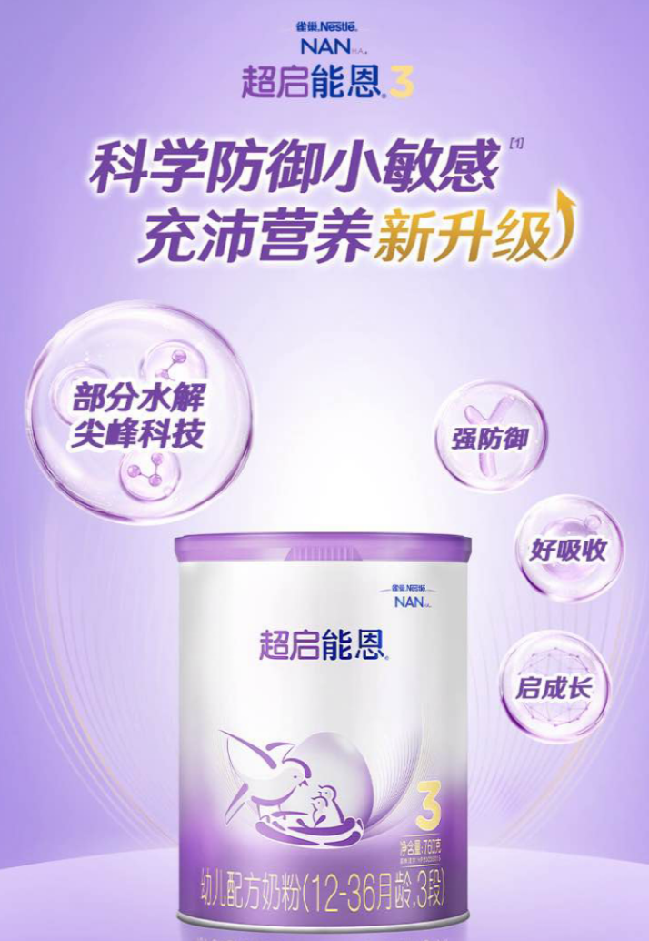 随着信息的扩散,越来越多的家长开始重视宝宝的营养和健康,雀巢诞生于1867年,一百多年来,雀巢始终呵护着一代又一代宝宝的健康成长。超启能恩作为雀巢旗下一款德国原罐原装进口幼儿配方奶粉,依托专业部分水解工艺,将,将大分子牛奶蛋白致敏性降低1000倍,科学防御小敏感;同时配方中添加活性益生菌Bb-12,OPO、DHA等有益营养,科学实证守护宝宝健康成长。