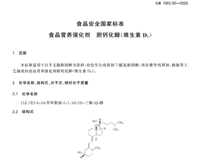 维生素D3作为一种对人体非常重要的脂溶性维生素,在维持骨骼健康及免疫系统健康都有着重要作用。为了进一步提高维生素D3产品的质量标准,我国于2021年3月11日出台了与维生素D3有关的新的国家标准,在维生素D3新国标中规定:羊毛脂是维生素D3的唯一合法原料。