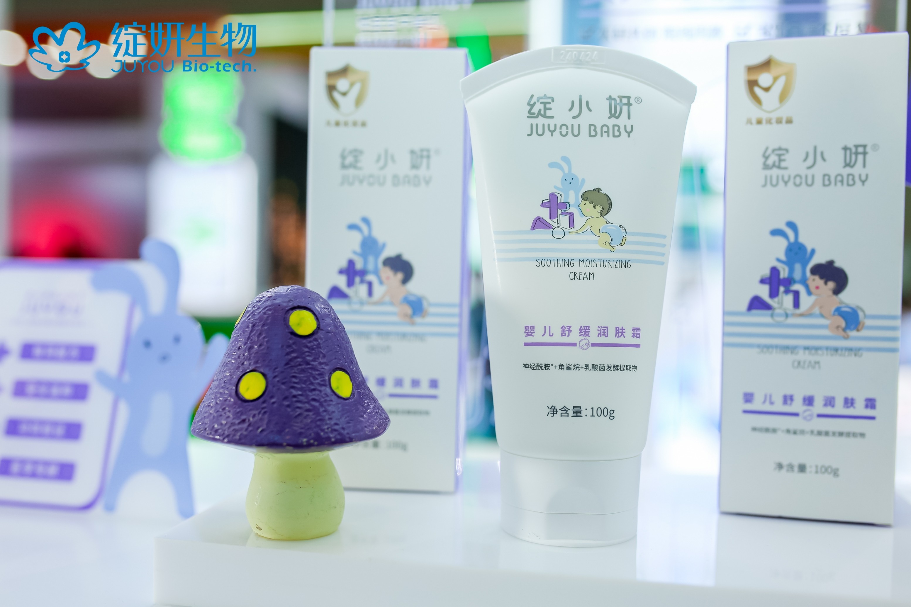 在此次展会上,绽小妍的明星产品——绽小妍婴儿舒缓润肤霜成为关注焦点。针对婴幼儿皮肤屏障尚未发育完全、易受刺激的问题,这款产品经过了多项临床试验验证,并通过专利方法(中国发明专利:ZL202110597837.9)制备的核心成分乳酸菌发酵提取物还具有卓越的保湿与舒缓效果。相比传统植物提取物,该成分富含多重大分子多糖,不仅能在皮肤表面形成网状保湿屏障,提供媲美透明质酸的持久滋润,也更加适合问题皮肤的宝宝使用,有效缓解儿童皮肤难题。