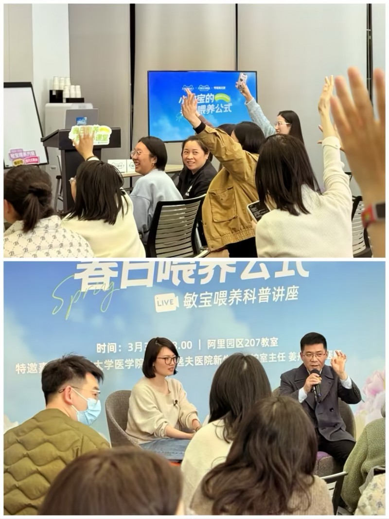 3月31日,“小敏宝的春日喂养公式”科普讲座在阿里巴巴园区圆满落幕。活动以"解锁敏宝喂养"为主题,通过专家科普、互动探讨与暖心伴手礼的多元形式,为70余组家庭提供了直面过敏难题的解决方案。讲座通过钉钉、视频号、小红书三大平台同步直播,吸引了超过5000名观众在线观看学习。浙江大学医学院附属邵逸夫医院姜舟主任医师的深度解读,不仅揭示了婴幼儿过敏的成因与应对策略,更将专业的医学知识转化为通俗易懂的育儿指南,让科学喂养理念真正"落地生根"。