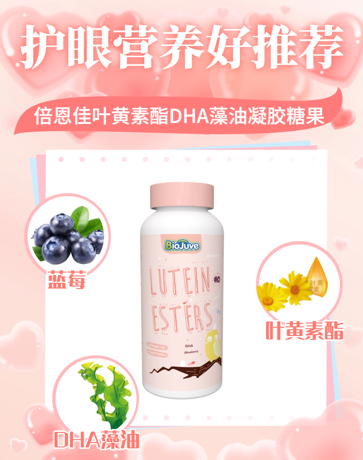保护宝宝视力,选择倍恩佳叶黄素酯DHA藻油凝胶糖果,三重护眼营养,击败成长路上的恶视力,给眼睛多一份关怀。