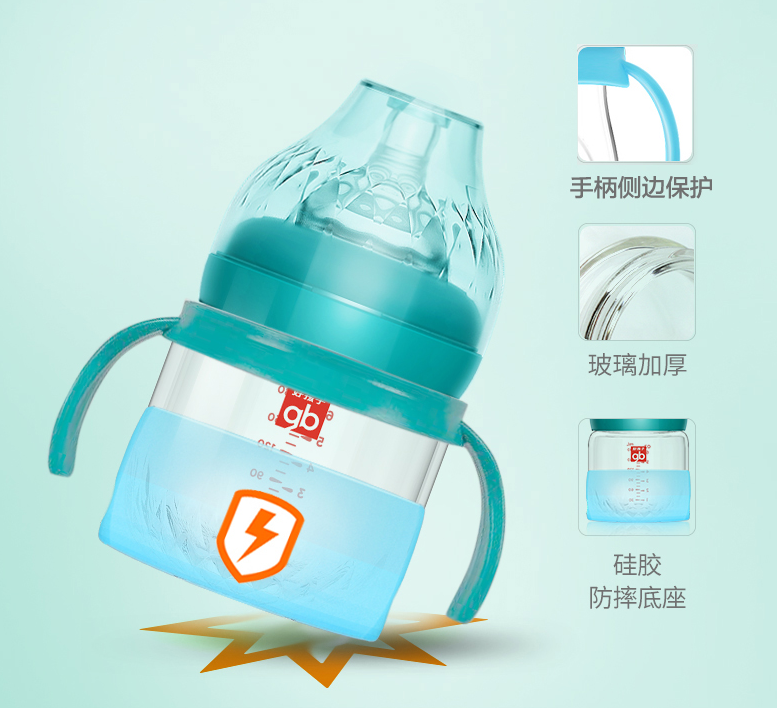 产品特点:好孩子有一大特点就是采用玻璃奶瓶,然后奶瓶外边有硅胶防摔底座,高温消毒都不用担心会产生有毒物质。