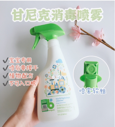 美国进口的,品质有保证~而且是天然植物成分,无香味,可以用来给宝宝的玩具餐椅等用品消毒清洁~喷雾不够细腻,家里有宝宝的使用时要小心,不可入眼入口,使用后最好是要擦干!