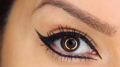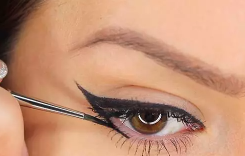 沿着你的下眼线,向上创造一个翅膀。这一步帮助你确保你的眼线是相等的。
