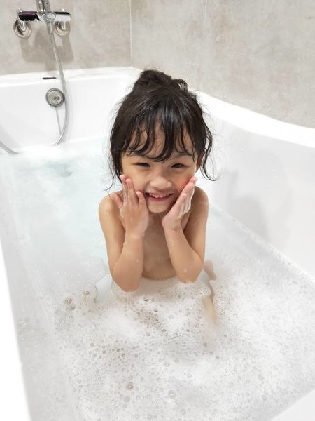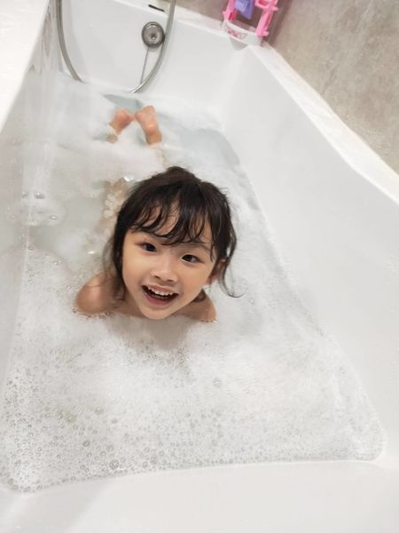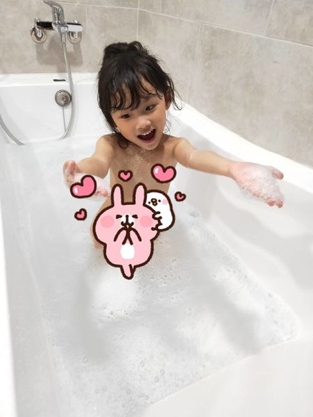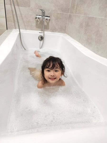 天然的泡泡不刺激很安心,就让小孩多玩一些时间。(此时妈妈可以先闭上眼睛享受泡澡的时刻)