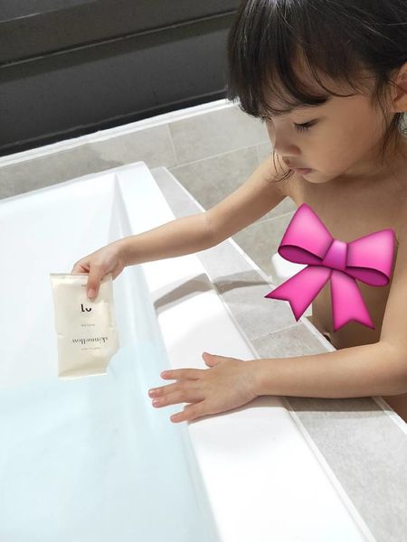 使用方式很简单,只要将沐浴粉倒入就可以喔!倒入时一边用莲蓬头冲水,会有更多泡泡喔!